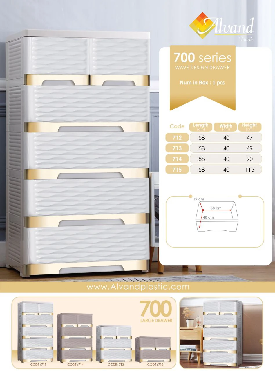 فایل 714 موجدار الوند، یک فایل کشویی شیک و کاربردی با طراحی مدرن و منحصر به فرد است. جلوی کشوها به صورت موجدار بوده و بدنه سفید با نوارهای طلایی تزئین شده، جلوهای لوکس و خاص به محیط میبخشد. طراحی هوشمندانه این فایل، با دو کشوی بالایی دوتایی و سایر طبقات تکی، امکان استفاده به عنوان دراور را نیز فراهم کرده است، که گزینهای ایدهآل برای تازهعروسها و نظمدهی وسایل کوچک مثل لوازم آرایشی است. کشوهای روان و جادار، دسترسی آسان به وسایل را ممکن میسازند و پلاستیک با کیفیت بالا دوام طولانیمدت محصول را تضمین میکند. فایل 714 موجدار الوند، ترکیبی از زیبایی لوکس، کارایی و طراحی هوشمندانه برای فضای خانه یا اتاق شخصی شماست.