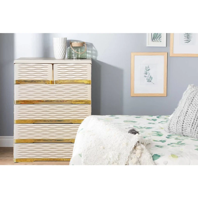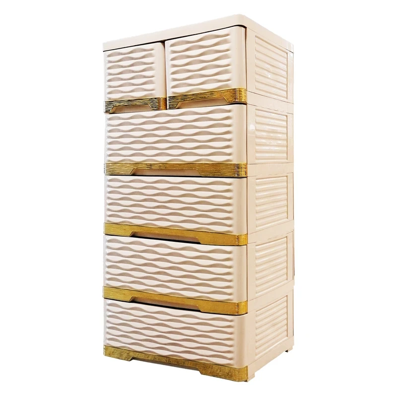 فایل 715 موجدار الوند، یک فایل کشویی شیک و کاربردی با طراحی مدرن و منحصر به فرد است. جلوی کشوها به صورت موجدار بوده و بدنه سفید با نوارهای طلایی تزئین شده، جلوهای لوکس و خاص به محیط میبخشد. طراحی هوشمندانه این فایل، با دو کشوی بالایی دوتایی و سایر طبقات تکی، امکان استفاده به عنوان دراور را نیز فراهم کرده است، که گزینهای ایدهآل برای تازهعروسها و نظمدهی وسایل کوچک مثل لوازم آرایشی است. کشوهای روان و جادار، دسترسی آسان به وسایل را ممکن میسازند و پلاستیک با کیفیت بالا دوام طولانیمدت محصول را تضمین میکند. فایل 715 موجدار الوند، ترکیبی از زیبایی لوکس، کارایی و طراحی هوشمندانه برای فضای خانه یا اتاق شخصی شماست.
